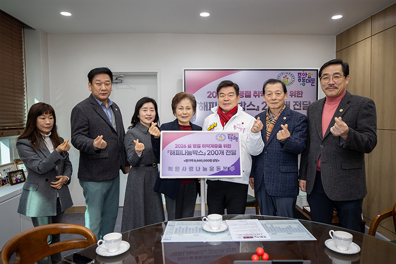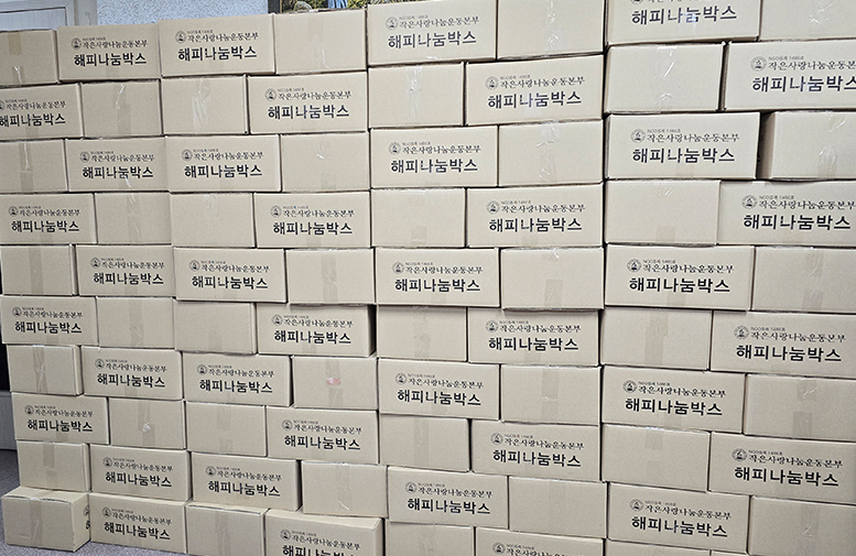 2026년 02월 03일 작업기간 : 2026.02.02 전달기간 : 2026.02.03 저소득층 가정을 위해 식용품들을 담은 '해피나눔박스'를 동대문구 각 14개동으로 총 200박스와 전라북도에 100박스, 총 300박스를 전달하였습니다. 물품 포장을 도와주신 봉사간원 분들과 나눔을 위해 도움을 주신 회원님들의 사랑에 진심으로 감사드립니다. 물품목록: 된장, 고추장, 라면(5개입)2봉지, 어간장, 떡국떡(1kg)1봉지, 보조배터리 *도움을 주신 회원님 명단* ※PC기준 ctrl+f 를 누르신 후 성함을 작성하시면 찾으실 수 있습니다! 도기주/탁진순/서준형/김경향/김호진/현혜경/허한나/김윤정/김한순/강신일/정연숙/연세화이트치과/박순주/최헌/박득진/박광진/문정희/류재철/도기동/SNJ/조순애/곽현욱/이하규/채구만/추학진/유원종/강종원/김명훈/정진석/강종필/(주)정림산업/장한일/조종형/한둘남/양전자시스템/장정석/구정본/오준호/안옥숙/이선정/이현석/김경순/정진호/전영호/권아연/임경표/지화용/엄성용/투게더헤어/문선국/강창용/차규정/천미란/홍준기/박춘원/박준상/박기철/김도희/이동아/이도완/최기홍/백귀현/정선용/이신우/이승희/권잠숙/지승희/송재봉/전형욱/안창현/홍성훈/이춘우/신승주/이종현/황순성/황재목/설대만/김상호/김은희/권성균/양승만/최재득/함영오/노규연/김윤기/최민지/김용진/이재우/최경희/김용수/김희종/김홍수/김학근/홍성근/정재호/정은미/김영태/김영숙/김연석/김순이/김수진/김소희/김연미/신진봉/박은순/한지명/김두환/이대범/김창수/김강수/조영미/소봉윤/장동효/신상철/안무엽/송미량/서양수/배진홍/최상수/최종대/김장수/김태범/이동용/배성관/이용숙/최원용/이미라/이기영/이금숙/허선옥/최지영/최연숙/윤덕수/윤석민/유주현/유은아/우국진/오제윤/오봉균/정진호/허두현/정희성/이동수/장석제/김준일/박우성/조상희/이성룡/조화준/이익재/조경군/김미화/김문실/정석도/장동환/정성진/정길구/권내현/최수경/이경수/이병철/이찬우/박숙자/오정환/김종환/이상훈/이정환/이원희/이상오/김선화/김선애/서정국/방동원/김상덕/차유성/김명호/주경희/이혜욱/이현준/이종환/박종현/박성호/롯데리아개봉점/김종현/김창중/노성룡(노우재)/김현호/채경수/김성찬/김이경/김해인/김희중/심오섭/임성현/김항진/남윤백/박상희/이영호/김동훈