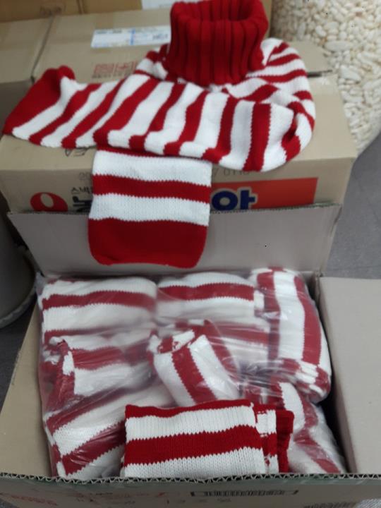 후원자님께서 보내주신 니트목도리110개입니다. 이 목도리들은 소외계층 청소년 가정으로 일부 나뉘어 주었고 남은 목도리들은 이 목도리가 꼭 필요한 어려운 가정으로 나눠져 추운 겨울을 따듯하게 보낼 수 있게됩니다.