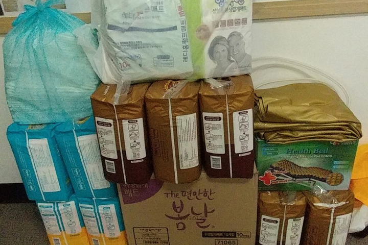 후원자님께서 보내주신 욕창방지매트(헬스베드)와 다양한 성인용기저귀들입니다. 보내주신 소중한 물품들은 이 물품이 꼭 필요한 소외계층으로 전달 할 예정입니다. 물품을 후원해주신 후원자님께 진심으로 감사드립니다.