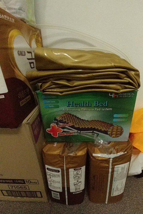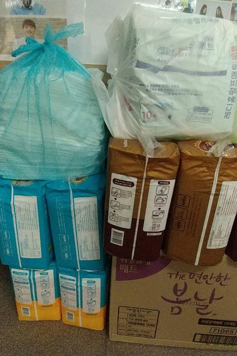 | 후원자님께서 보내주신 성인용기저귀와 헬스베드입니다 | |