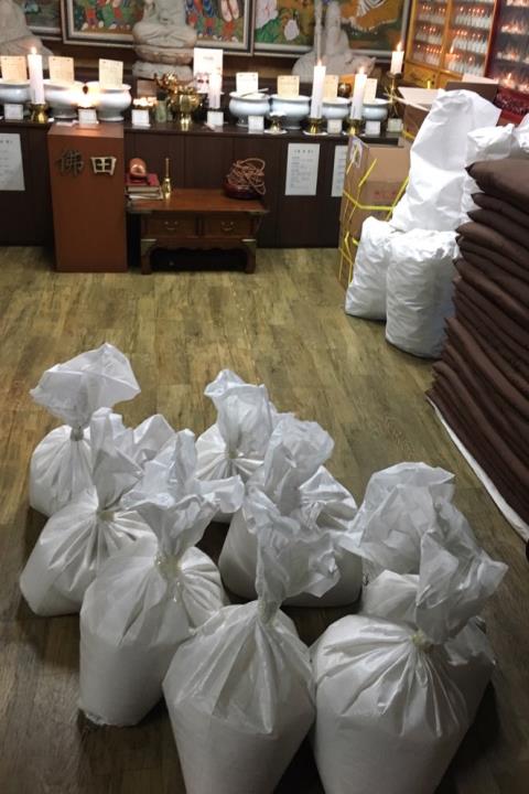 은평구에 있는 불광동 산중불사에서 보내주신 쌀 8포입니다.