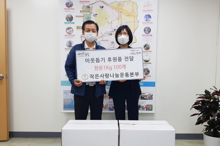 8월 7일 목요일, 소외계층을 위한 돼지고기 100kg을 중랑구청으로 전달했습니다. 이 물품은 중랑구청을 통해 관내에 거주하는 소외계층 가정으로 전달 될 예정입니다. 코로나확산 방지를 위해 전달식은 모두 마스크를 착용한 뒤 간소하게 진행되었습니다. 어려운 이웃을 위해 물품을 후원해주신 여러분들께 다시 한 번 감사인사드립니다. 모두들 건강 조심하세요, 감사합니다!