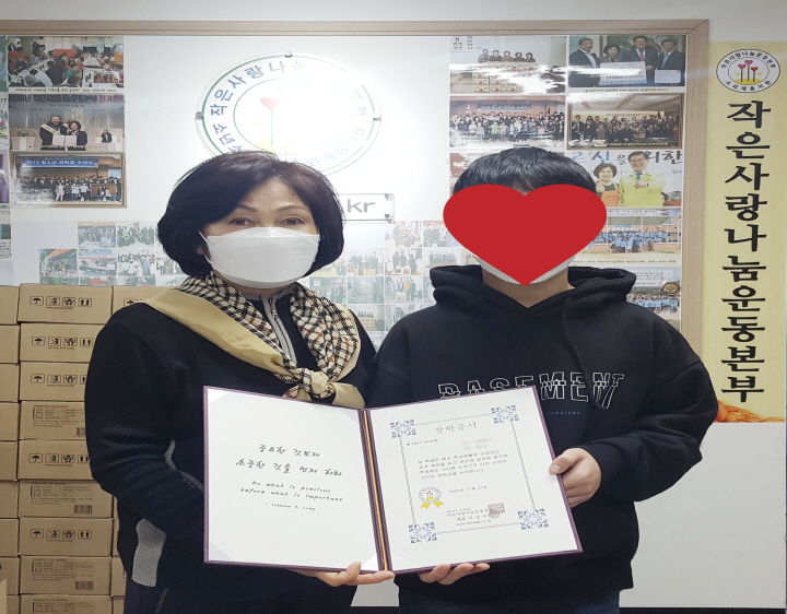 작은사랑나눔운동본부는 저소득층 청소년을 위해 코로나19 장기화로 인해 장학금행사는 취소되었지만, 각 지역의 주민센터로 장학증서와 선물을 전달하여 학생들이 주민센터를 방문하여 장학증서와 선물을 수령하는 방식으로 간소화하여 진행되었습니다. 모두 회원님들이 계셨기에 가능한 일이었습니다. 진심으로 감사드립니다.