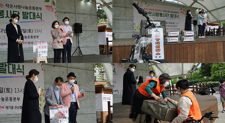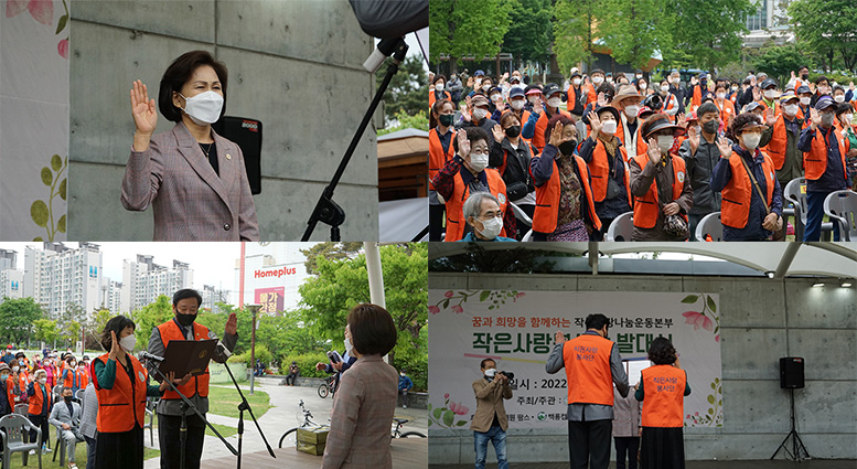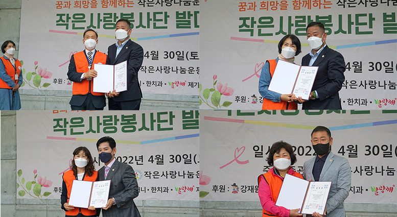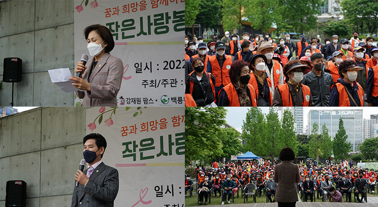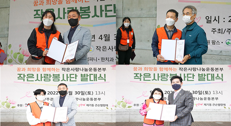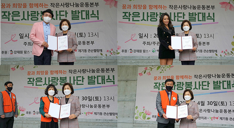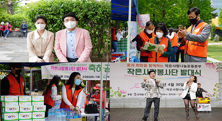 4월 30일 토요일 용두근린공원에서 작은사랑나눔운동본부 '작은사랑봉사단 발대식'을 개최하였습니다. 이번 발대식 이후 동대문구를 시작으로 전국적으로 더 많은 봉사단을 이끌어 세상의 따뜻함과 사랑을 나누어 더욱 성장해 나갈 것입니다. 앞으로도 저희 작은사랑나눔운동본부와 함께 해주시길 바라며 오랜기간, 혹은 새로운 마음으로 저희 단체와 함께 해주신 회원님들께 진심으로 감사드립니다. :) ※본 행사는 사진촬영 및 무대진행 외엔 모두가 마스크를 필수적으로 착용하였으며 손소독제를 배치해었음을 알립니다. 후원: 강재원팜스, 백룡컴퍼니, 제기동 큰손 빨랑깨 ![]() ![]() ![]() ![]() ![]() ![]() ![]() ![]() ![]() ![]() ![]() 모두 고생많으셨습니다 :) |
