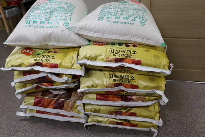 경희고등학교 22회 동기모임 여러분이 보내주신 보내주신 쌀20kg 12포입니다. 이 쌀들은 형편이 어려운 소외계층에게 나누어 전달될 예정입니다. 따듯한 마음을 가지신 여러분 덕분에 마음이 든든합니다. 다시 한 번 물품을 후원해주신 경희고등학교 22회 동기모임 여러분들께 진심으로 감사드립니다.