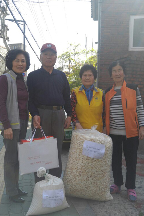 | 경로당으로 바이러스방어제, 쌀, 뻥튀기 나눔 | |
