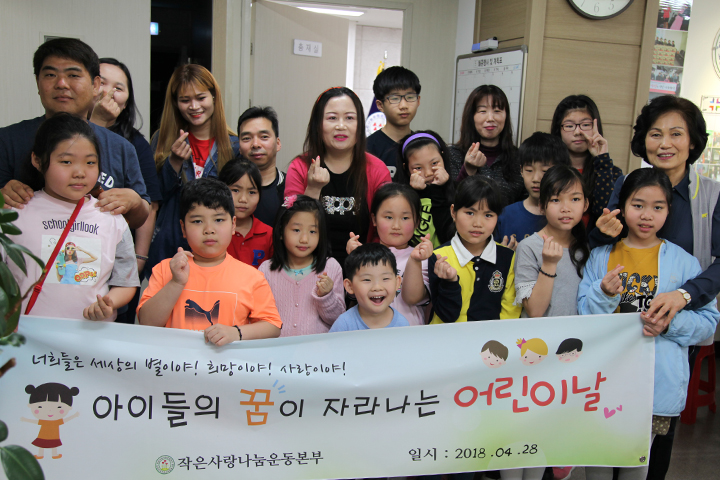 작은사랑나눔운동본부 사무실에서 가정의달 맞이 아이들을 위한 어린이날 행사를 진행했습니다. 행사에 참여한 아이들을 위해 맛있는 과일과 과자, 자장면과 탕수육, 그리고 피자와 음료를 주었습니다. 그리고 바이러스방어제와 의류를 포함한 학용품 선물도 주었습니다. 행사를 위해 힘 써주시고, 참여해주신 모두들 수고 많으셨습니다. 감사합니다.