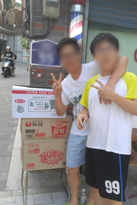 | 저소득층가정으로 라면, 김, 과자 나눔 | |