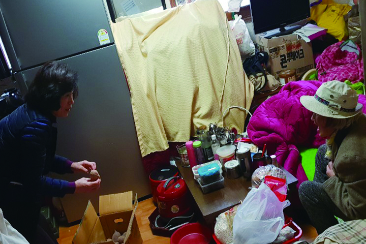 | 독거어르신 가정으로 국과 반찬, 빵과 떡 등 식재료 전달 | |