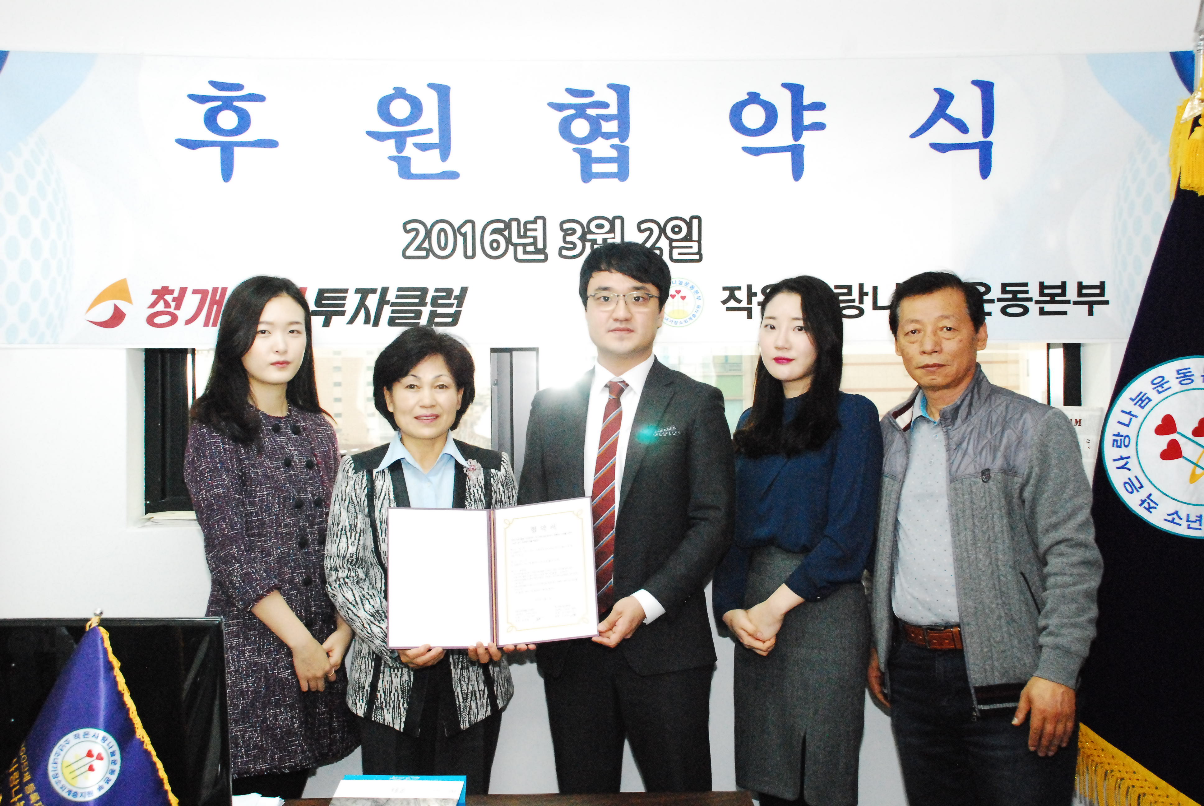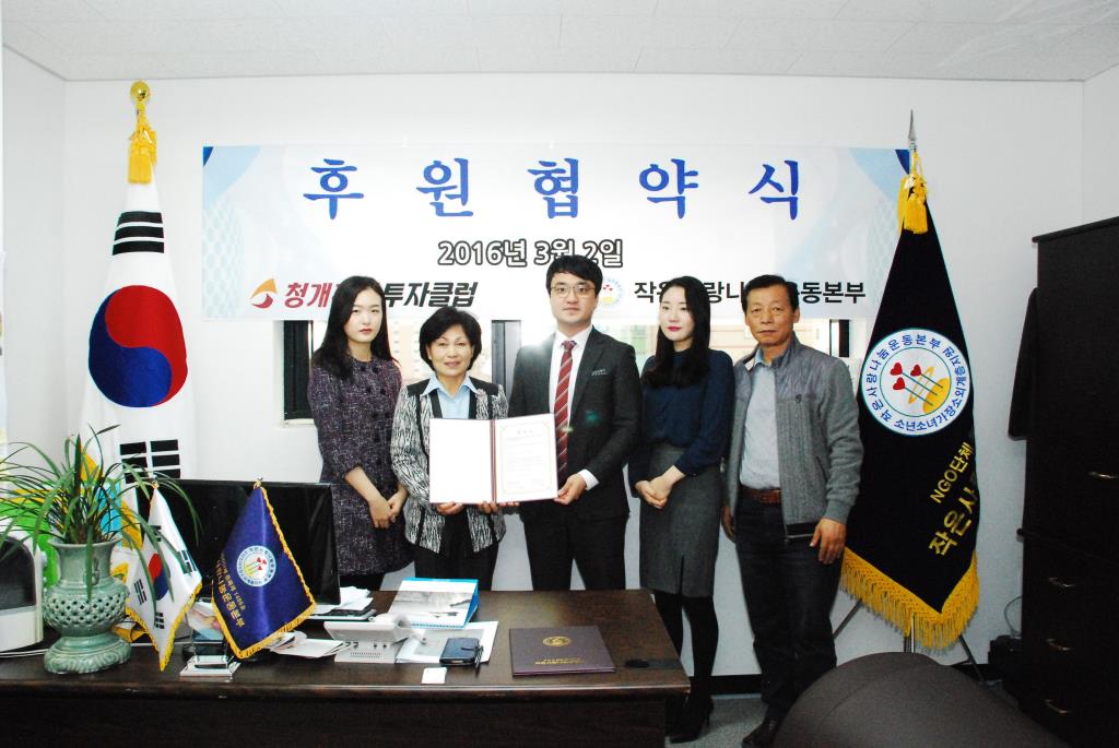 (주)청개구리투자클럽·작은사랑나눔운동본부 후원협약식