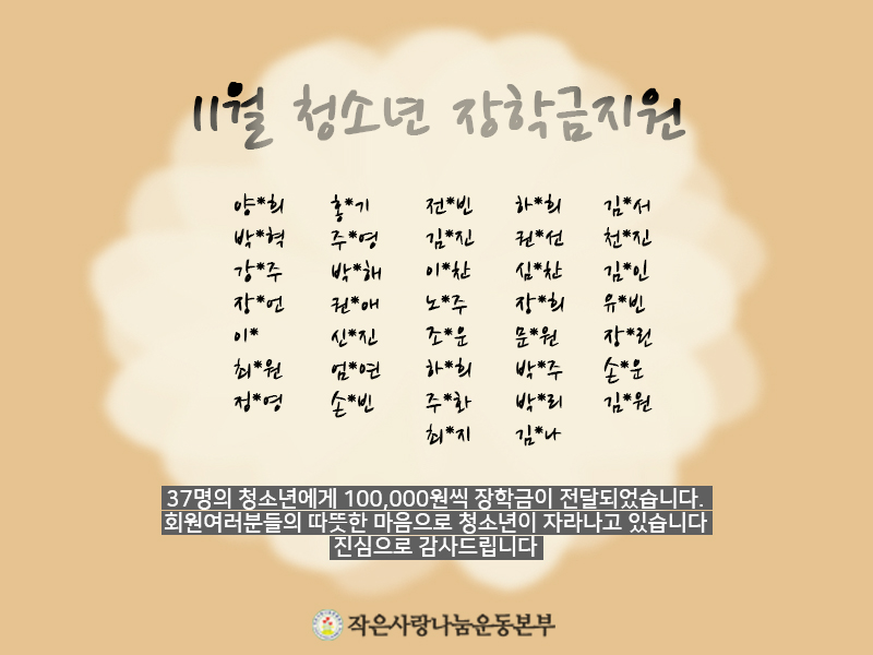 2016 작은사랑나눔운동본부 청소년 장학금 수여식