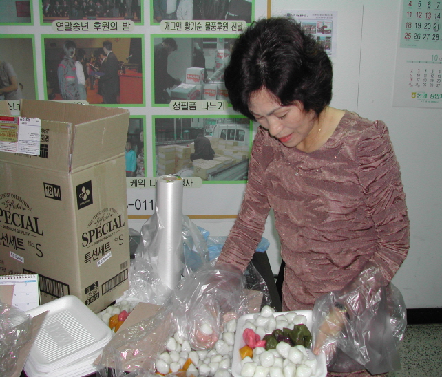 소년소녀가장 아이들에게 즐거운 추석을 맞아용돈과 송편 과일 김등을 자원봉사자와 조손가정에나누어 주었습니다.